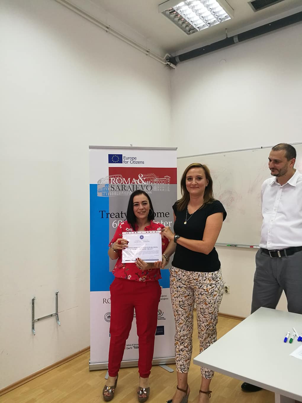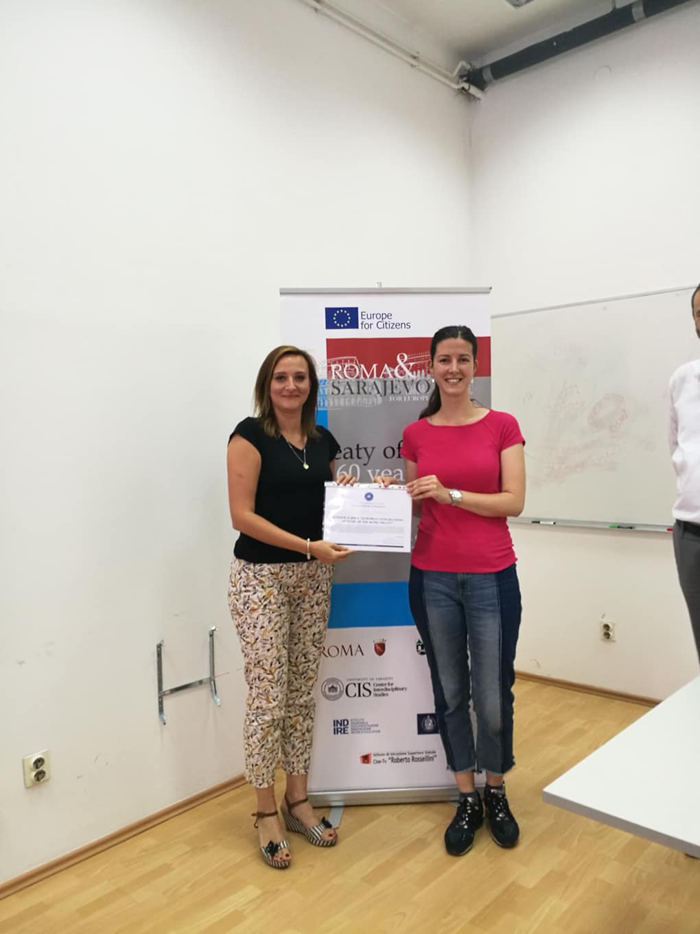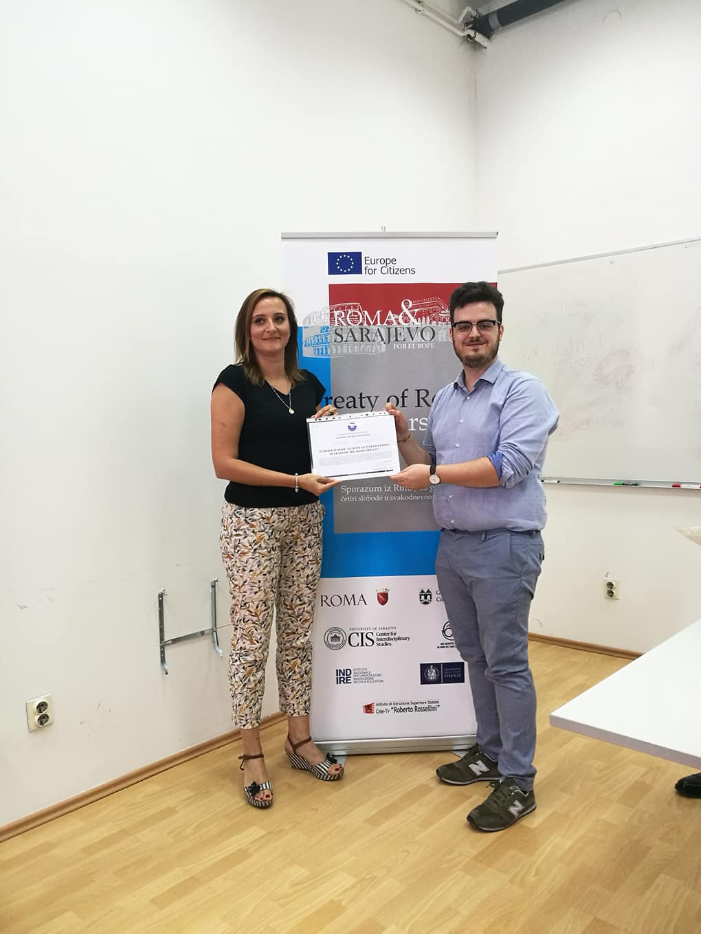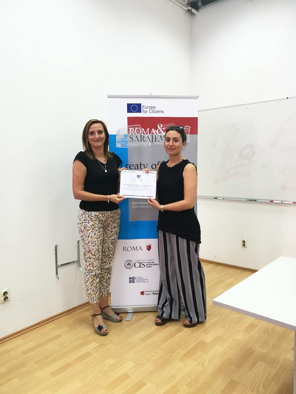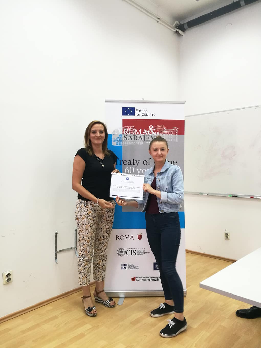 Danas je završena ljetna škola na temu “Evropskih integracija: 60 GODINA OD RIMSKOG SPORAZUMA” u Centru za interdisciplinarne studije Univerziteta u Sarajevu. Svi učesnici su uspJešno završili školu i dobili certifikate za aktivno učešće.