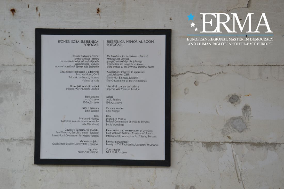 On 18th March 2014 ERMA students and tutors visited the Srebrenica-PotoÄŤari Memorial and Cemetery to Genocide Victims. After a guided tour given by one of the curators and survivor of the genocide, the students also paid a visit the Memorial Room where assisted to the screening of a documentary in the Factory. Finally, the group visited the Srebrenica city museum.