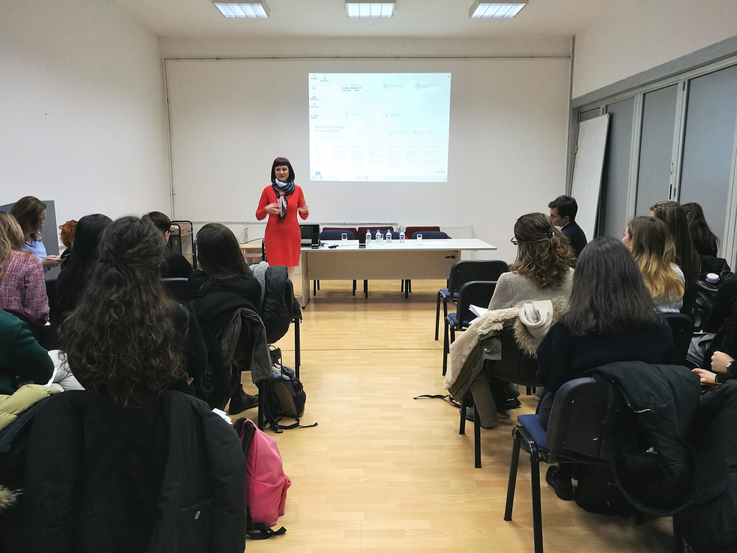 The director of the Center for Interdisciplinary studies, Prof. dr. Melika HusiÄ-MehmedoviÄ welcomed the students and introduced them to the activities of the Center, placing emphasis on their interdisciplinarity and the importance of the international cooperation in developing the Center’s educational programmes. Following up on this, the ERMA Programme Coordinator Ms. Mariana HadžijusufoviÄ gave a detailed presentation of the ERMA programme, inviting the students from the Udine University, who are currently studying for their bachelorās degrees, to apply for this programme and other LLL programmes, such as international summer and winter schools, organized by CIS.